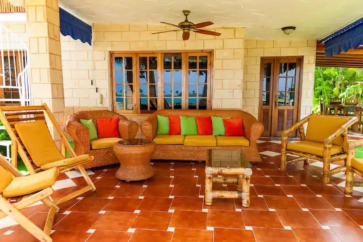 Las áreas comunes son: Terraza al Mar, Ranchón en segunda Planta al Mar, una pérgola con 2 mesas una de ellas equipada para jugar domino, donde también tiene dos asadores rústicos de carbón, muelle de 15 metros más un ranchón y otro muelle más bajo dentro del mar y una gran piscina muy cerca del mar para disfrutar de un baño de mar, sol y/o piscina. Se encuentra entre el Restaurant El Laurel y El Marea.